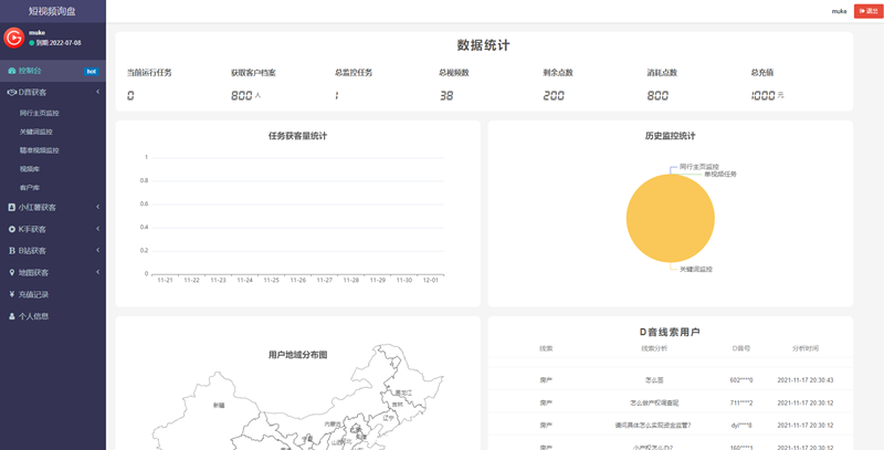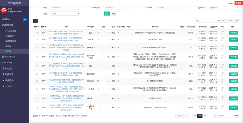 短视频询盘采集系统 企业获客新利器 流量暴增 咨询不断 独立管理后台